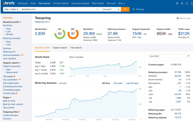 This feature of Ahrefs is where you can view a detailed profile for your website or competitor.